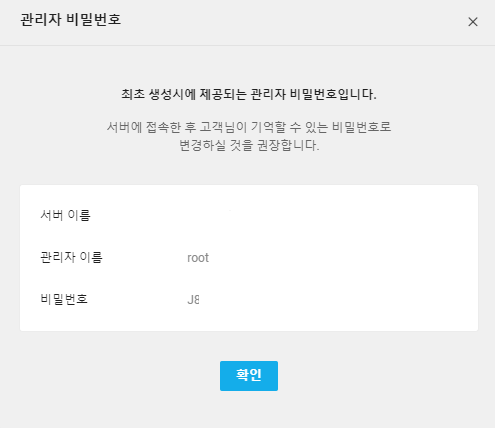 그리고 서버에 접속하려면 비밀번호도 있어야 한다. 그래서 비밀번호 설정을 하려고 눌렀는데